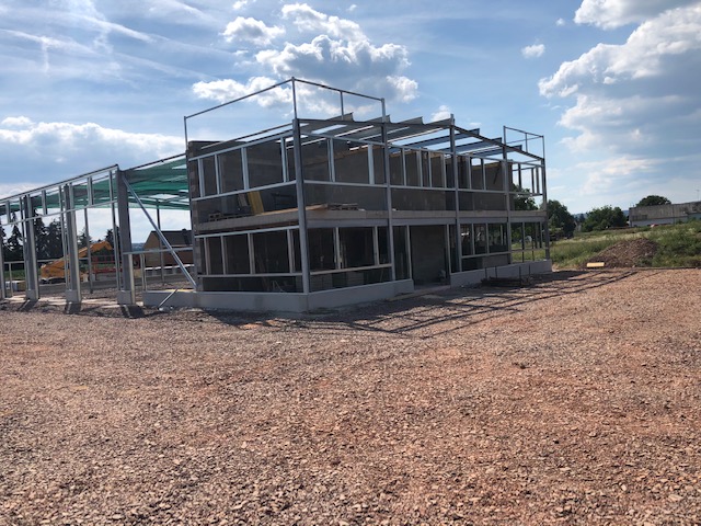 Bau des neuen Bürogebäudes mit Lagerhalle